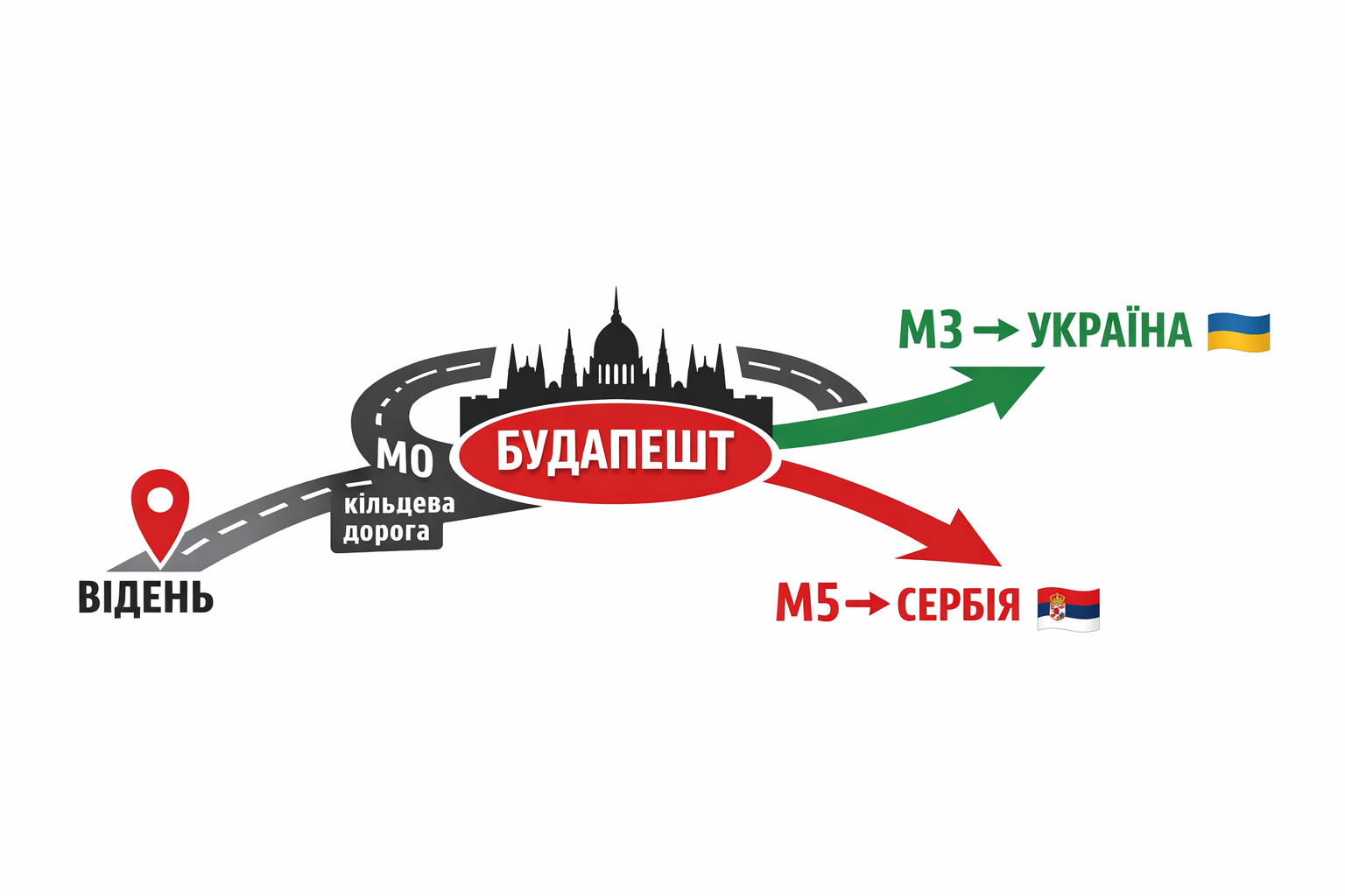 Це важливий момент, тому що М0 — це кільцева дорога навколо Будапешта. Тобто сама по собі ця точка не є доказом того, що машини рухались у бік Сербії. Такий маршрут цілком може використовуватися і при русі з Австрії до України.